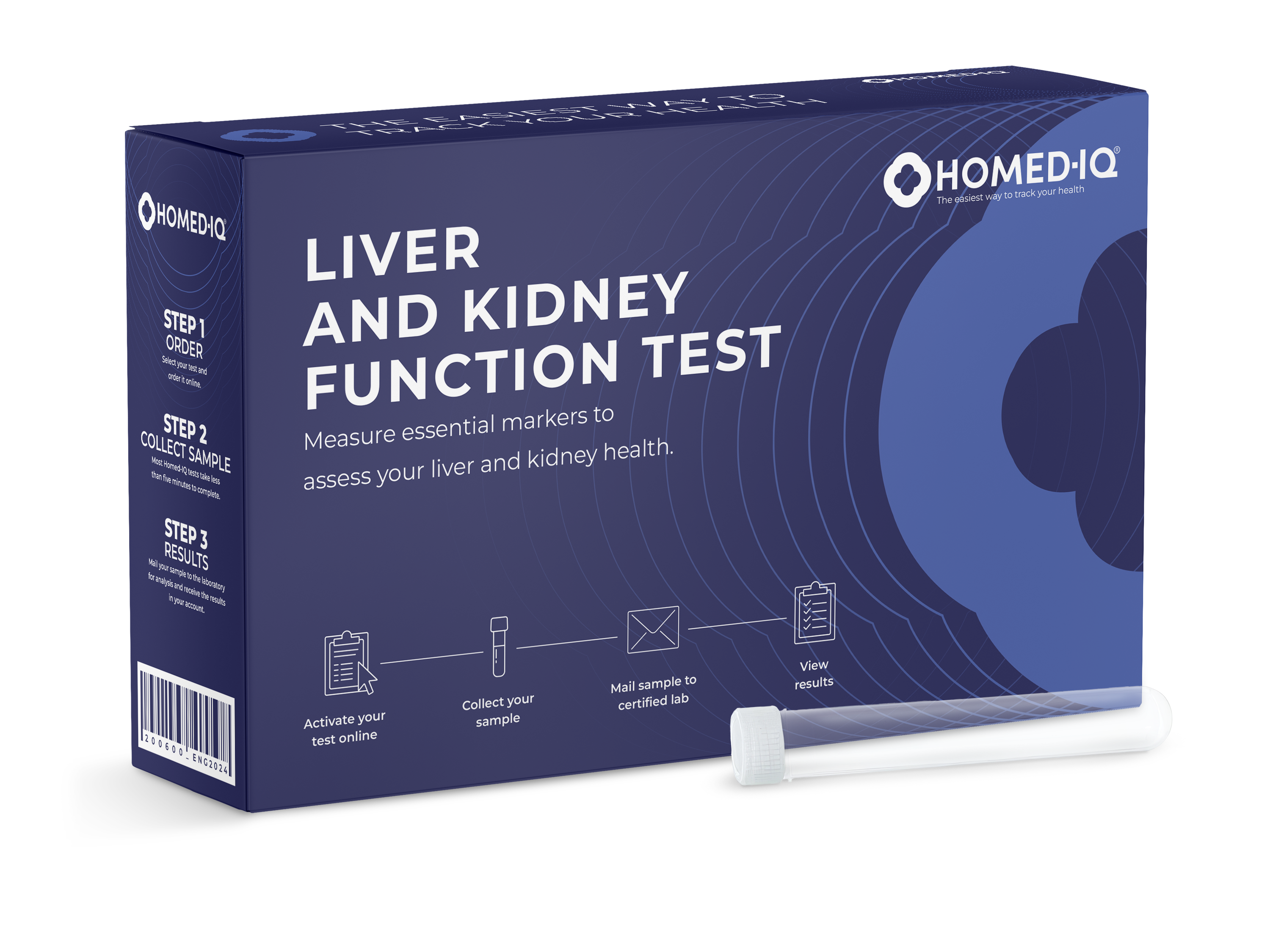 This test measures several key indicators to determine liver and kidney function. Both liver and kidney damage do not always cause detectable symptoms until they are in an advanced stage and irreversible damage has occurred. This test allows you to monitor liver and kidney function routinely without visiting a doctor’s office.