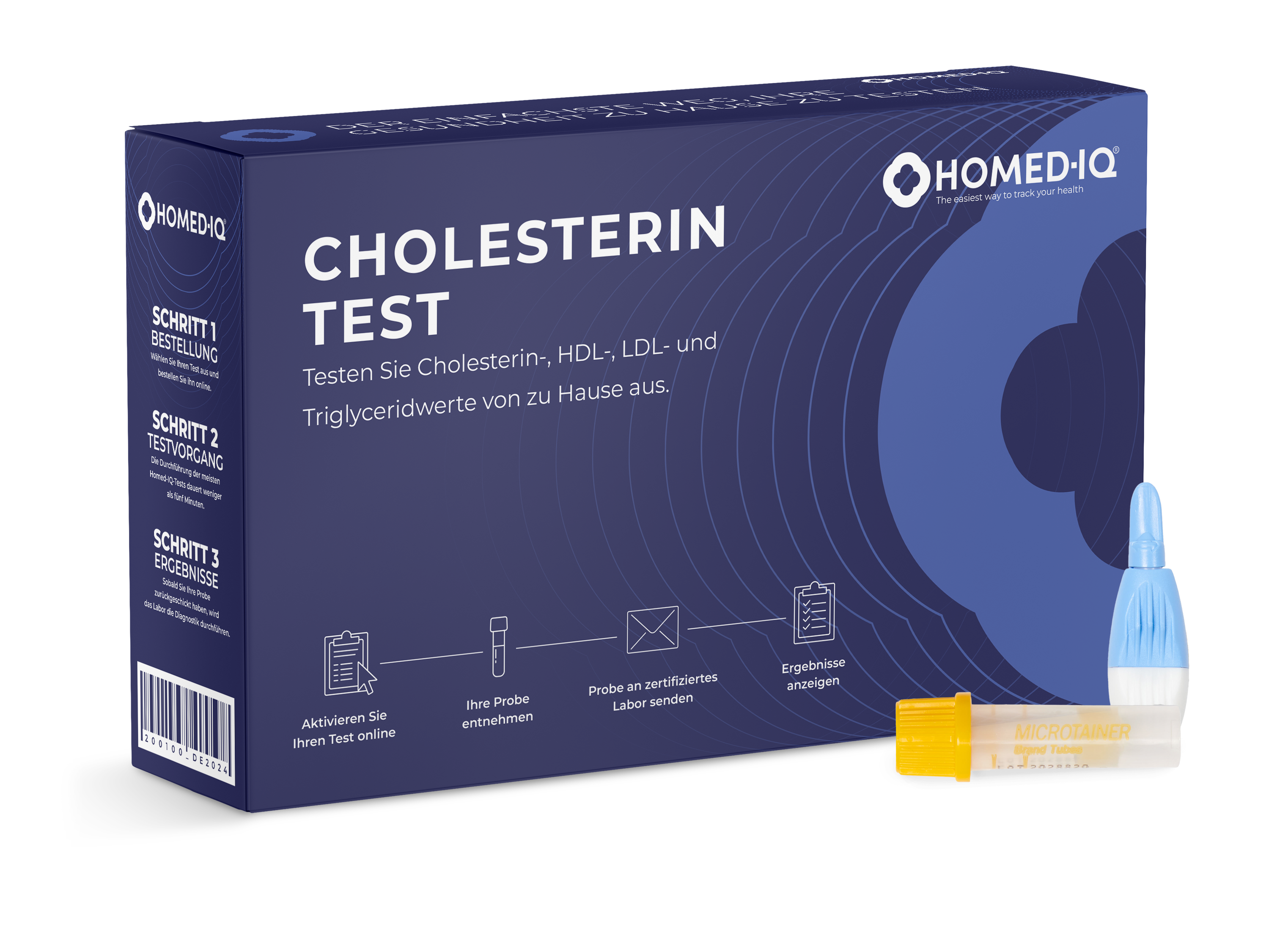 Bijna 25% van de wereldbevolking heeft een hoog cholesterol. Met deze test kun je je cardiovasculaire gezondheid beoordelen door de hoeveelheid cholesterol en triglyceriden in je bloed te meten. Controleer je huidige cholesterolwaarden of volg ze in de loop van de tijd met eenvoudig te begrijpen resultaten voor drie cholesterolmarkers (totaal cholesterol, HDL, LDL) en triglyceriden.