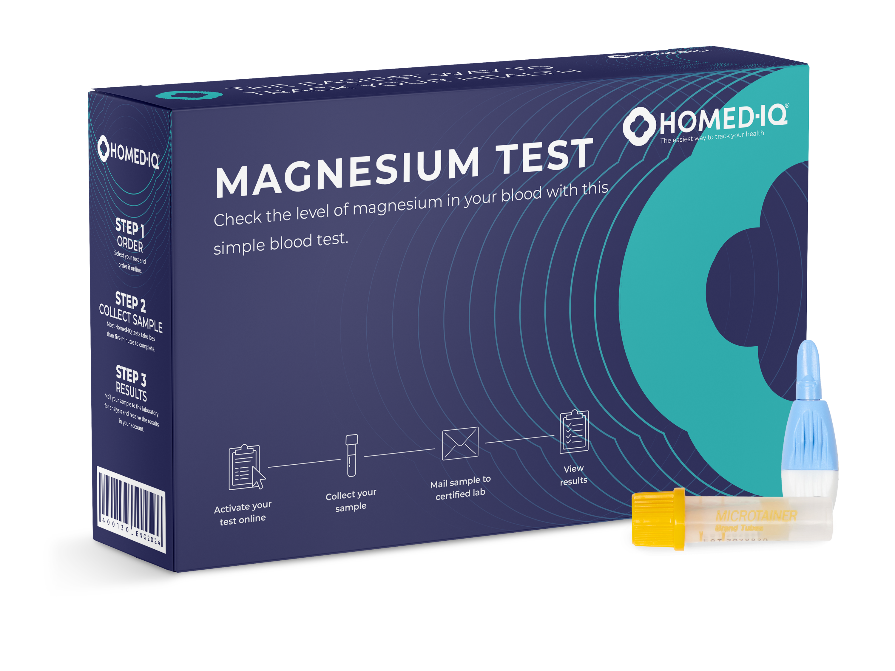 Als een van de meest voorkomende mineralen in het menselijk lichaam speelt magnesium een cruciale rol in de normale werking van cellen, zenuwen, spieren, botten en het hart. Een afwijkend magnesium niveau – te hoog of te laag – kan leiden tot een reeks gezondheidsproblemen, onaangename symptomen en een negatieve invloed op je dagelijks leven. Deze bloedtest met vingerprik controleert het magnesiumgehalte in je bloed, eenvoudig vanuit huis.